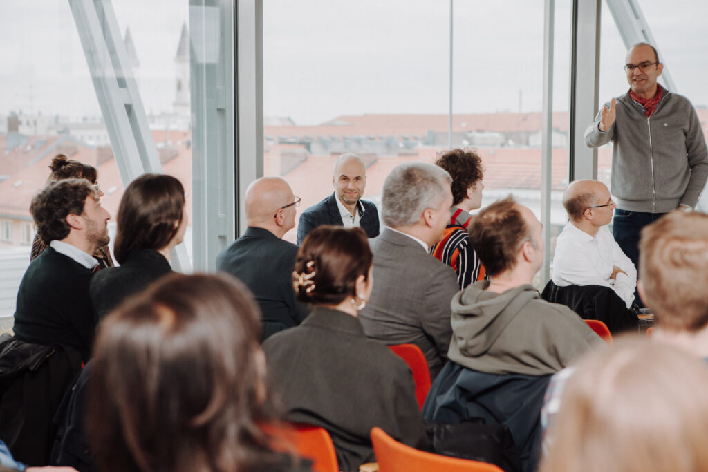 The evening started with a welcome presentation by Cluster’s Spokesperson Professor Sebastian Pfotenhauer, walking the audience through the goals of TransforM, the motivation for creating such a cluster, and the pathways to impact that TransforMaims to build. TUM Executive Vice President for Research and Innovation Professor Gerhard Kramer then a welcome speech, outlining the achievements of TUM as a University of Excellence and the important role of social science research for advancing research also in technical fields.